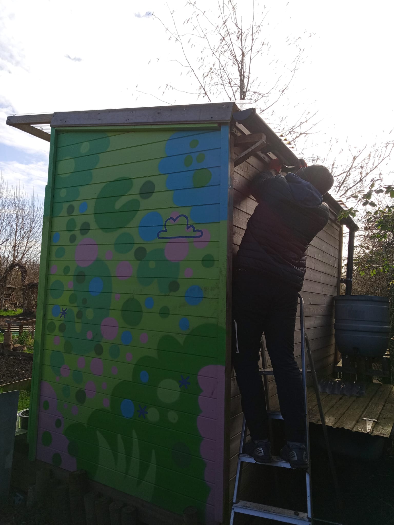 Richie has been checking the shed roofs and guttering to make sure they're all secure and won't be blown off in the winds.